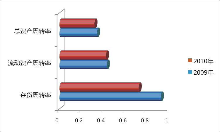 2010年,房地產(chǎn)上市企業(yè)存貨周轉(zhuǎn)和資產(chǎn)周轉(zhuǎn)速度均小幅下降。受調(diào)控政策影響,房地產(chǎn)上市企業(yè)存貨消化速度降低,現(xiàn)金的回流受阻,企業(yè)資金鏈面臨較大壓力。另外,流動(dòng)資產(chǎn)周轉(zhuǎn)率和總資產(chǎn)周轉(zhuǎn)率亦出現(xiàn)不同程度下降,企業(yè)經(jīng)營(yíng)效率較2009年有所下降。滬深房地產(chǎn)上市公司的存貨周轉(zhuǎn)率為0.72,較2009年下降21.87%;流動(dòng)資產(chǎn)周轉(zhuǎn)率為0.42,下降1.81%;總資產(chǎn)周轉(zhuǎn)率為0.32,下降6.89%。
