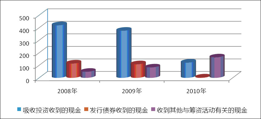 2010年,國(guó)家出臺(tái)多項(xiàng)措施收緊房地產(chǎn)融資。房地產(chǎn)A股上市企業(yè)現(xiàn)金流量表也反映出房地產(chǎn)上市企業(yè)所面臨的資金面壓力。2010年,樣本房地產(chǎn)A股上市企業(yè)現(xiàn)金流量表中吸收投資收到的現(xiàn)金總計(jì)為121.59億元,較去年大幅下滑67.65%,這顯然與證券市場(chǎng)IPO增發(fā)配股全面暫停有關(guān)。樣本房地產(chǎn)A股上市公司僅一家年報(bào)中顯示出發(fā)行債券收到的現(xiàn)金計(jì)2.94億元,較去年總計(jì)108.51億元的水平下降97.29%。